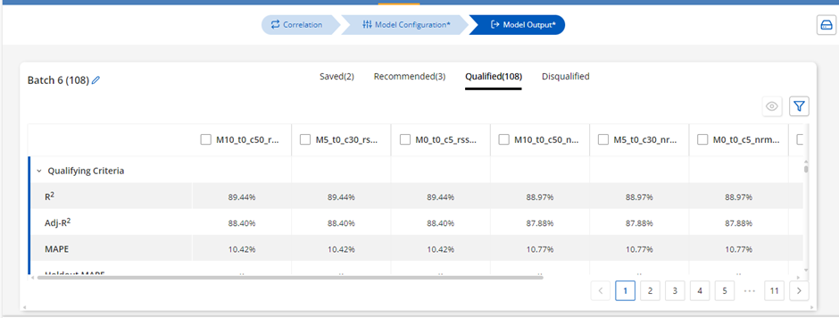 Note: all the iterations meeting all criteria fall under the Qualified tab, while those missing at least one criterion are listed under the Disqualified tab in the model summary output page.