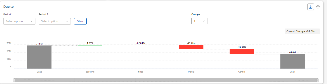 Due-To: Allows the user to compare the change in contribution of the variables between two periods defined (Period 1 and Period 2).
