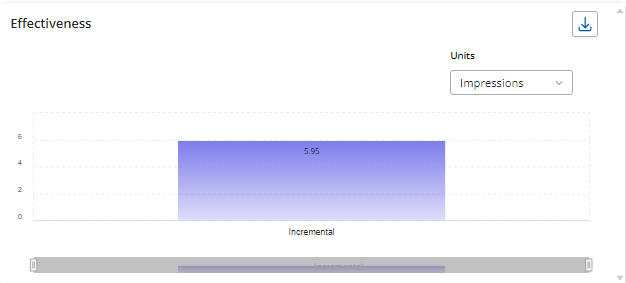 Effectiveness: Helps the user to analyze how impactful is a variable per support to the model. By default, the chart is loaded for impression variables if user has set the units in variable properties.