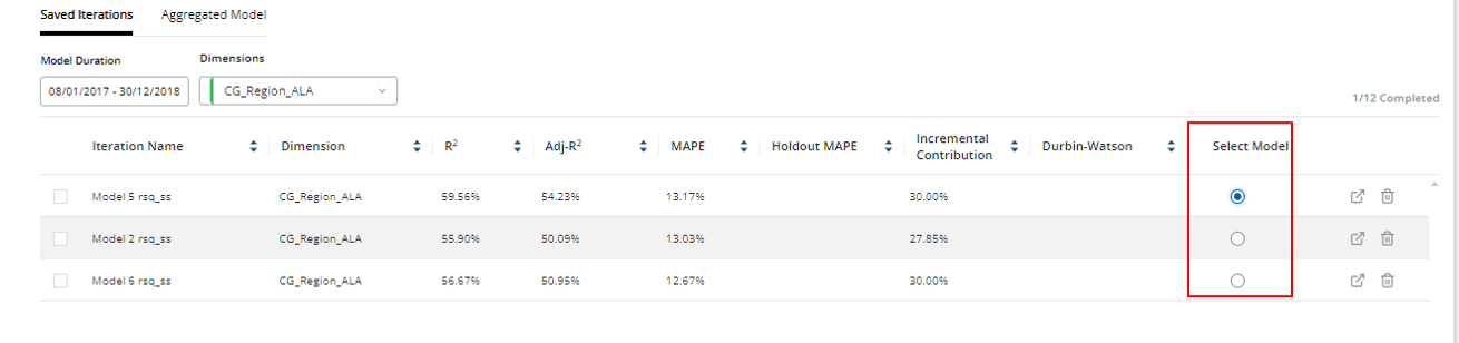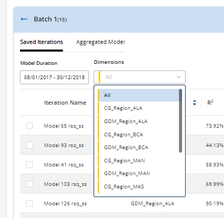 For multi-dimensional datasets, along with ‘Saved Iterations’ user will another tab called ‘Aggregated Models’.