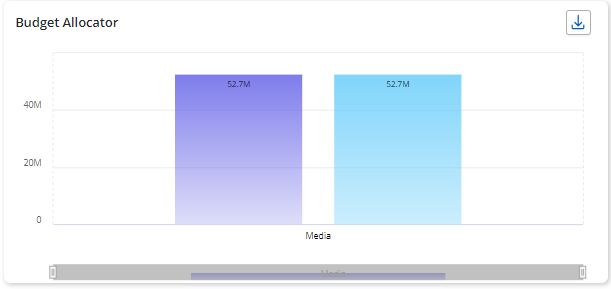 Budget Allocator - This chart allows users to optimize resource allocation by applying 50-150% constraints on each variable's budget while keeping the total marketing budget locked at 100%.