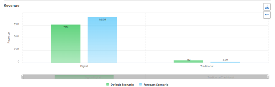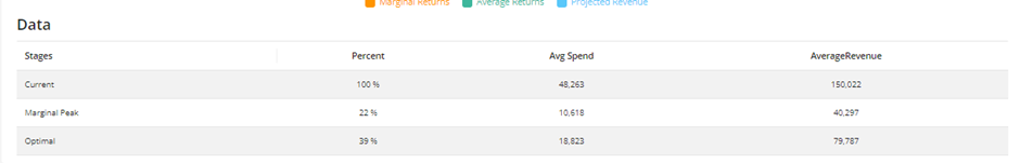 Forecast Scenario – Represents the revenue achieved after optimizing variables within the constraints and the budget provided by the user.