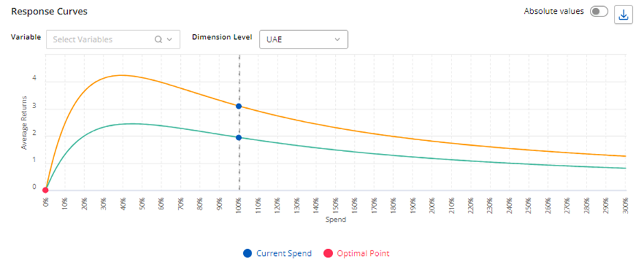 response curves suggest an optimal spend range, consider relative ROIs and base