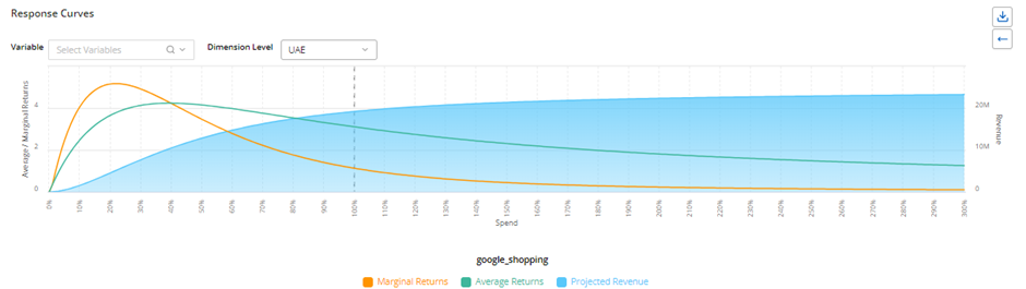 e. Dimension Filter: For single-dimension projects, the dimension will automatically default to the classified dimension, and the response curve aggregation will be generated at this level. For multi-dimension projects, all dimensions will be selected by default. The user must then choose the specific dimension at which they wish to generate the response curves.