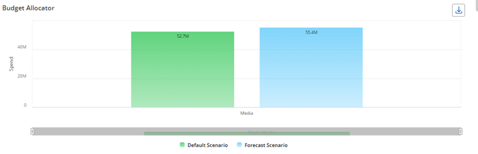 this, the budget allocator chart shows comparison between default scenario and